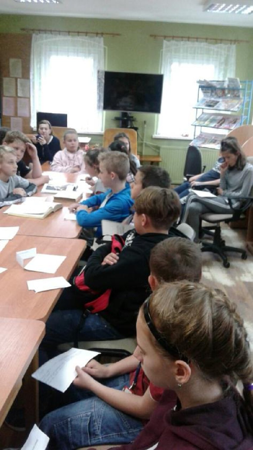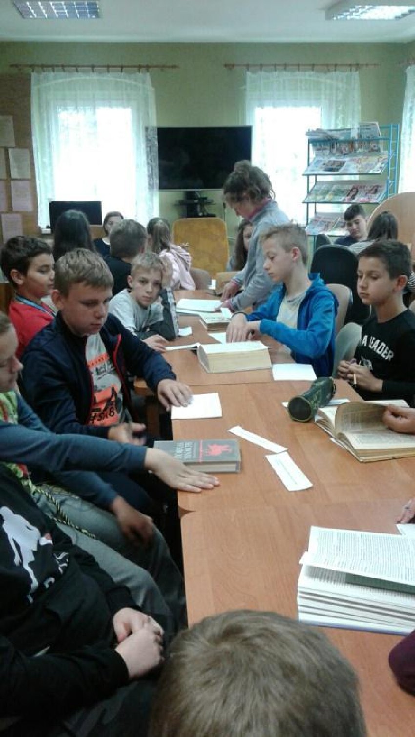 W GBP w Męcince dla dzieci z klas IV - VI przeprowadzono lekcje biblioteczne : "Jak powstaje książka i jak jest zbudowana" i "Jak korzystać z księgozbioru podręcznego".