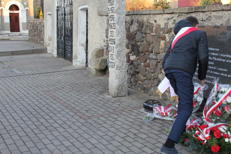 Samorządowcy, sołtysi, delegacje szkół, przedstawiciele ochotniczych straży pożarnych złożyli uroczyste wiązanki kwiatów przy tablicy pamiątkowej w Męcince oddając tym samym hołd wszystkim, którzy walczyli o wolną Polskę.