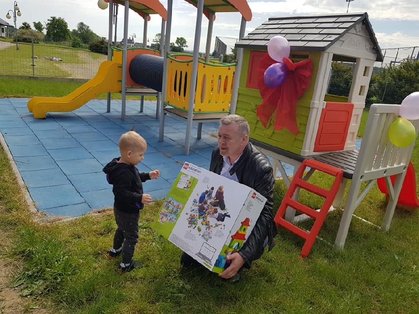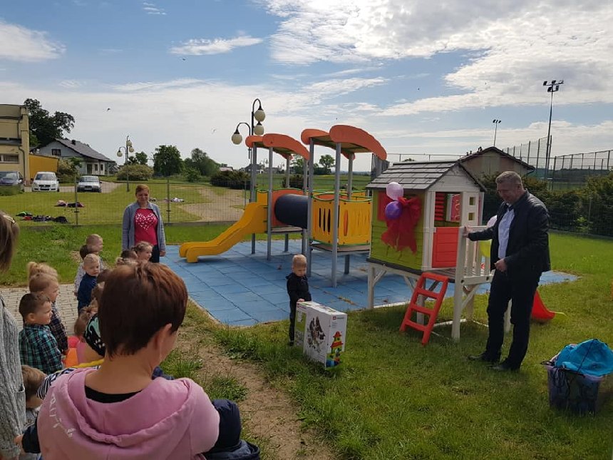 Nowy domek do zabawy, klocki i wiele innych prezentów otrzymały dziś z rąk Wójta Mirosława Brzozowskiego dzieci z gminnego żłobka w Męcince. Wójt podarki przekazał przede wszystkim w imieniu społeczności lokalnej naszej gminy.