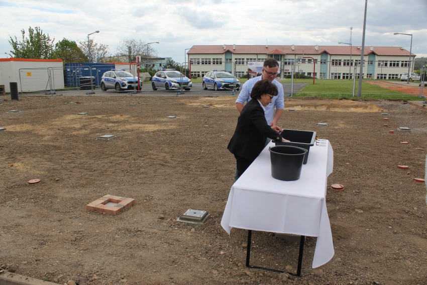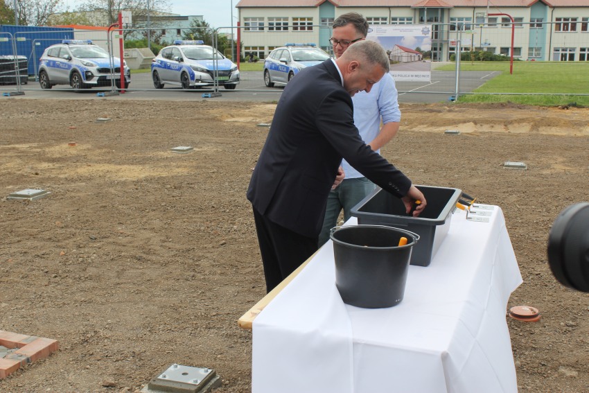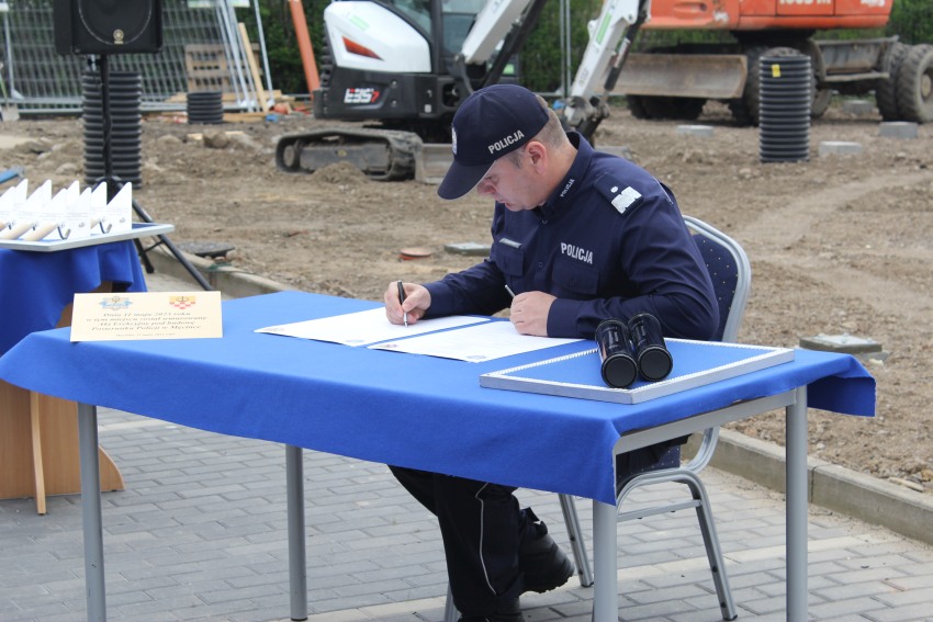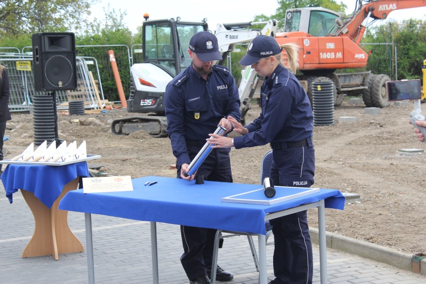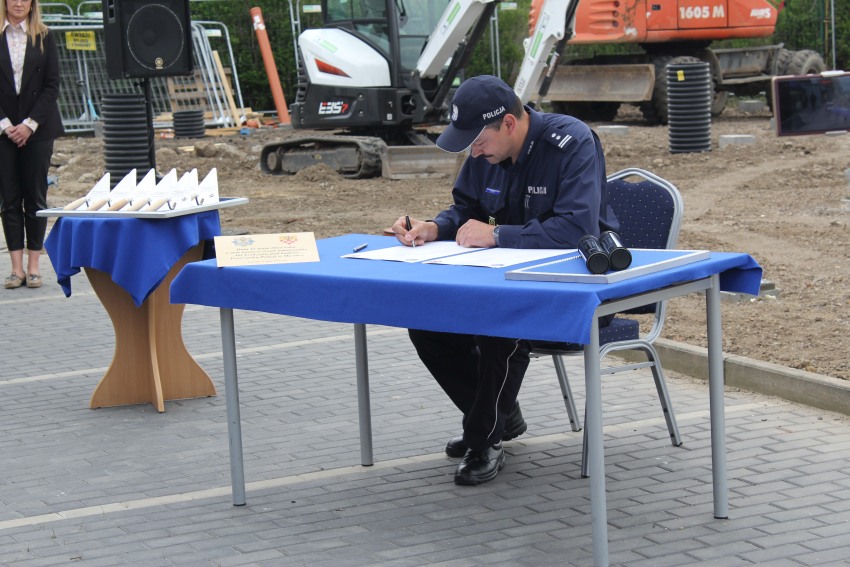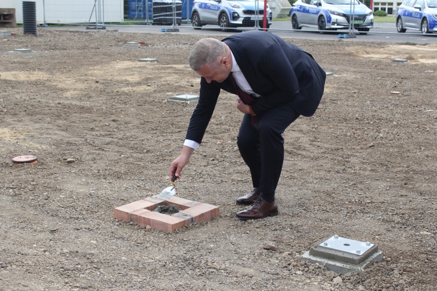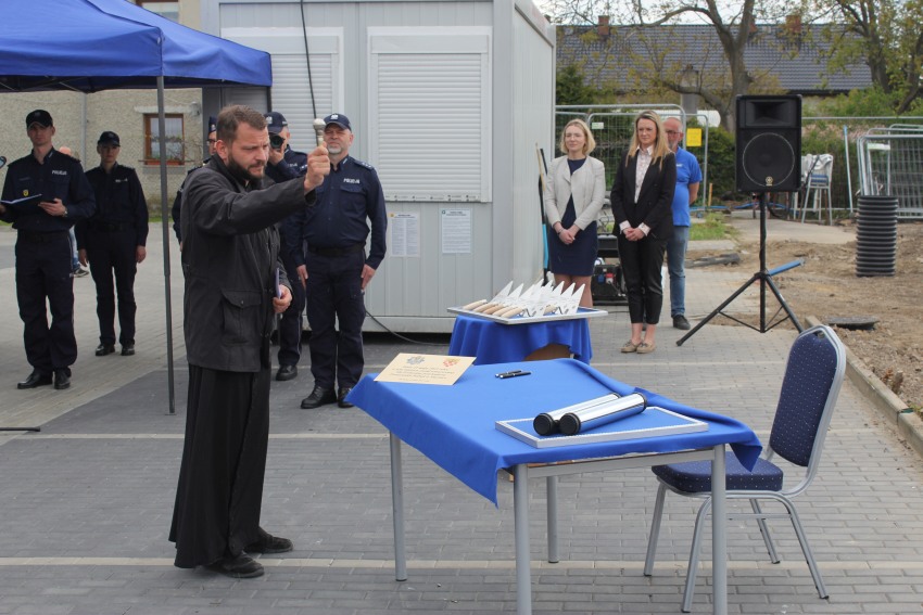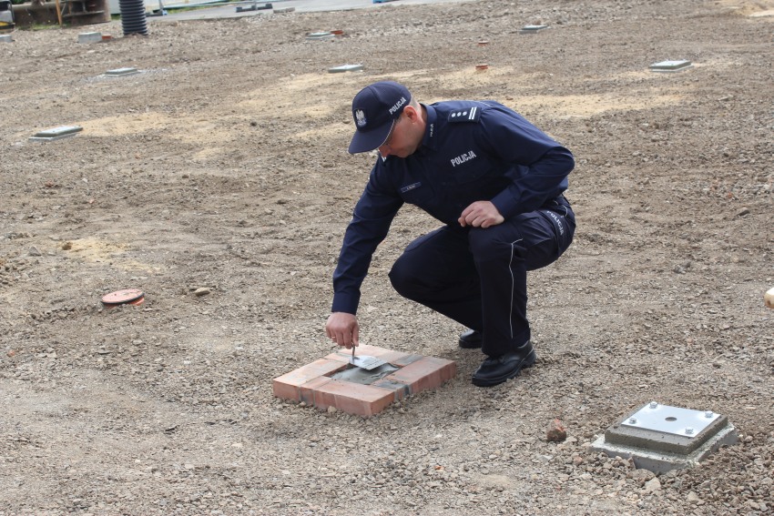 Wbudowanie kamienia węgielnego pod Posterunek Policji w Męcince