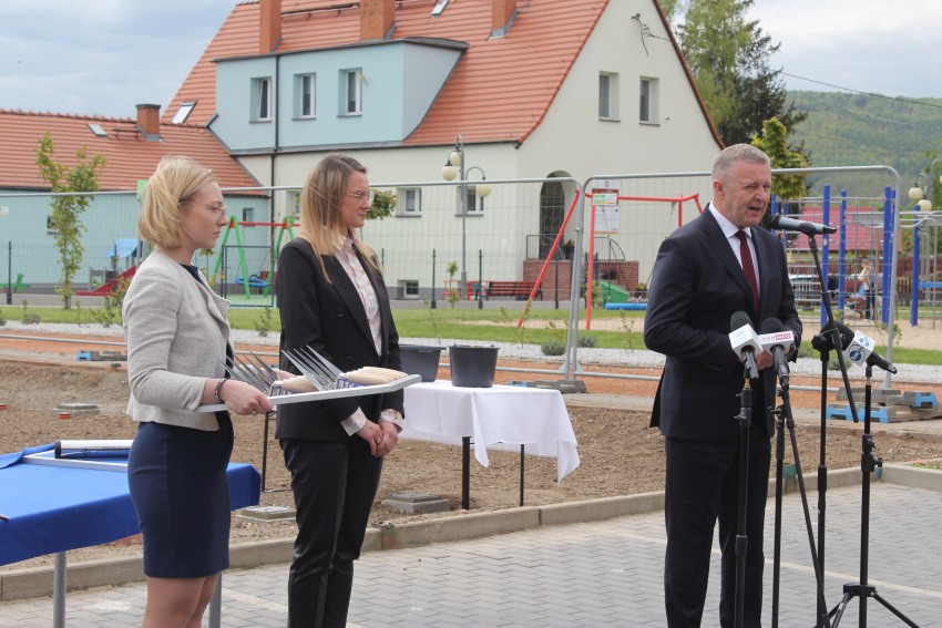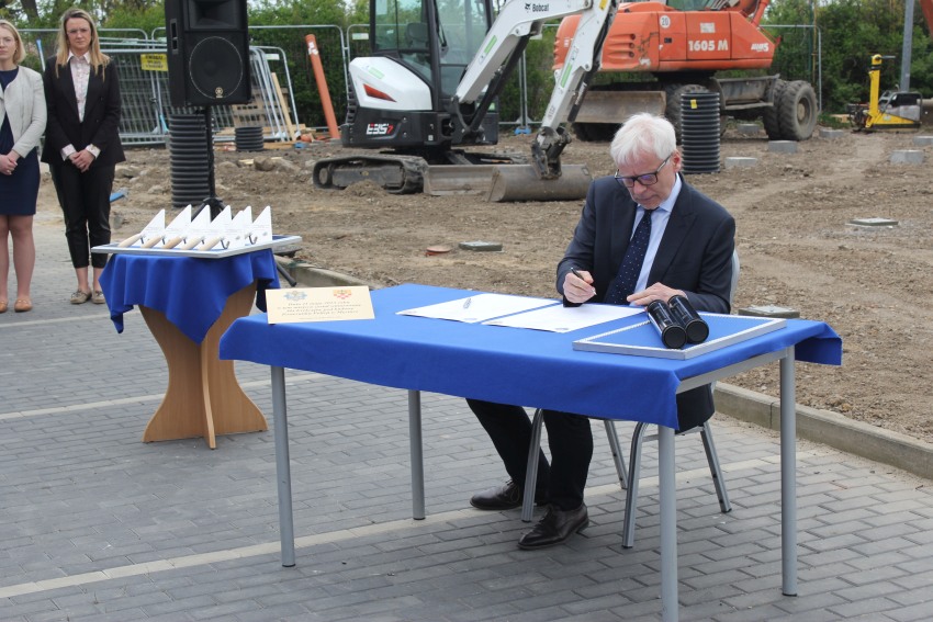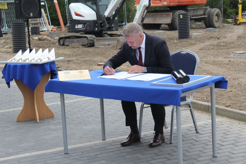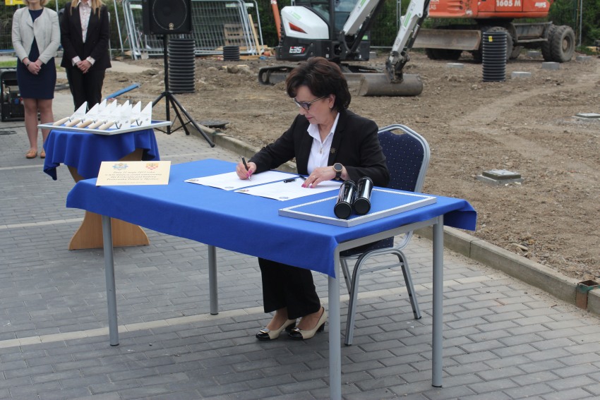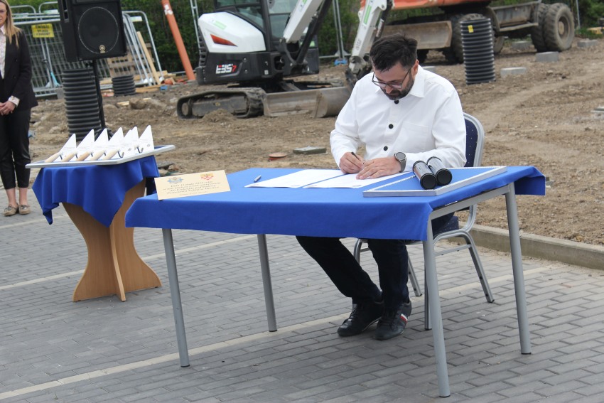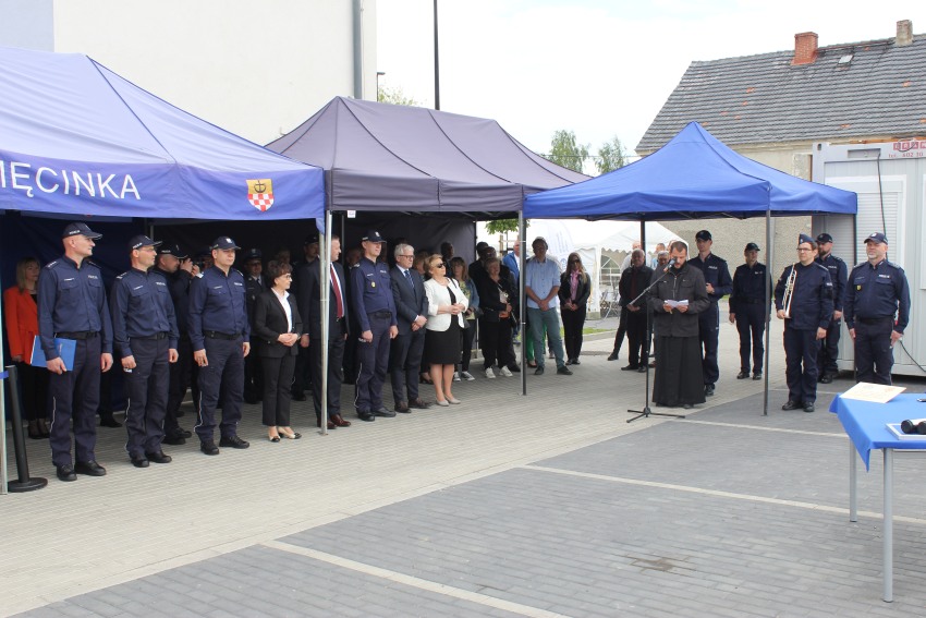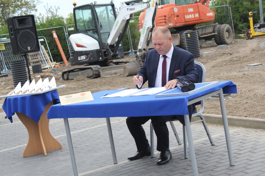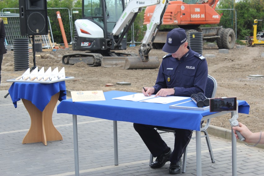 Wbudowanie kamienia węgielnego pod Posterunek Policji w Męcince