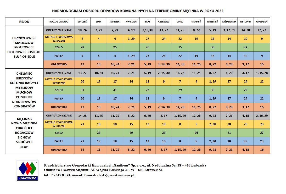 HARMONOGRAM ODBIORU ODPADÓW KOMUNALNYCH NA TERENIE GMINY MĘCINKA W ROKU 2025